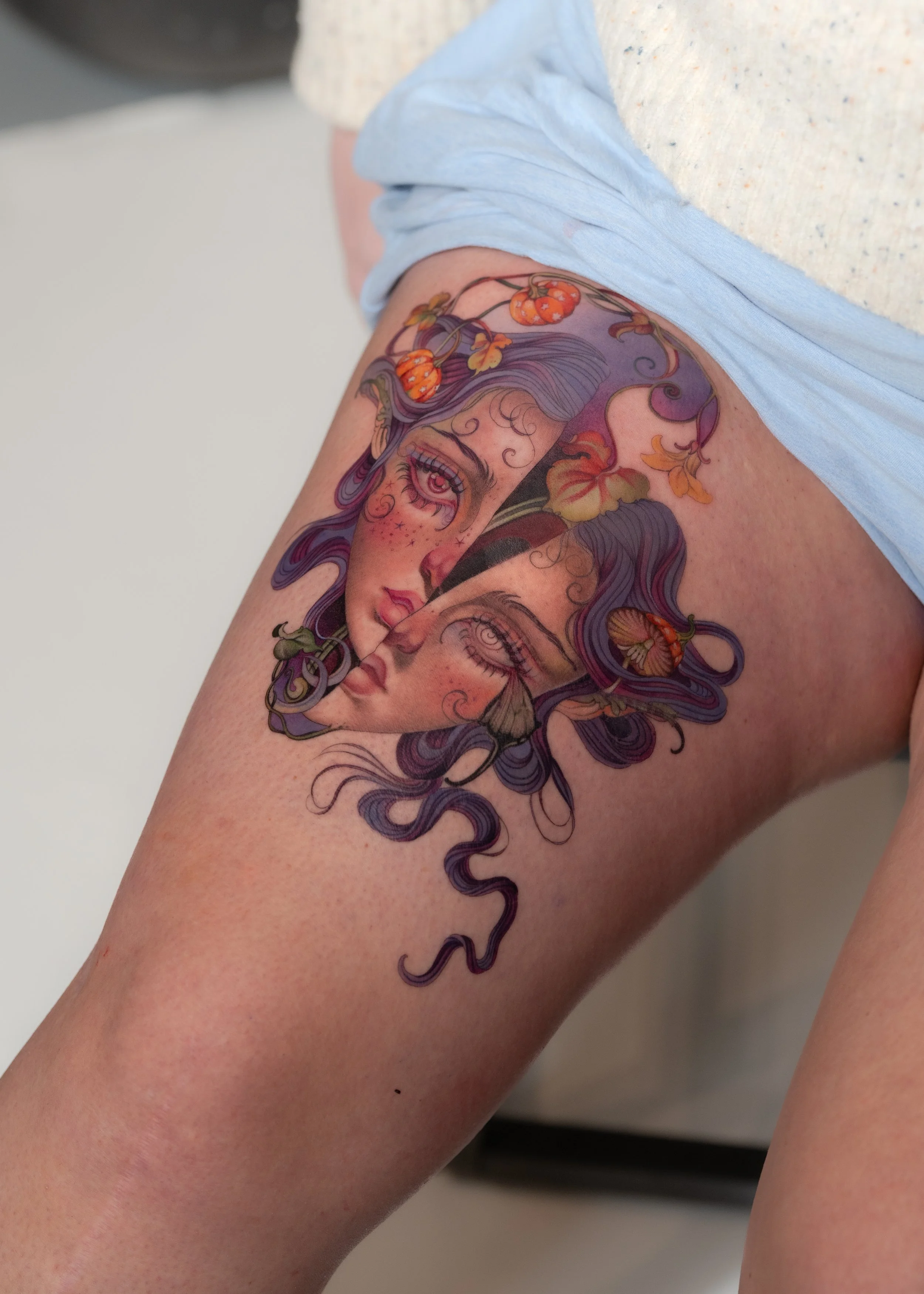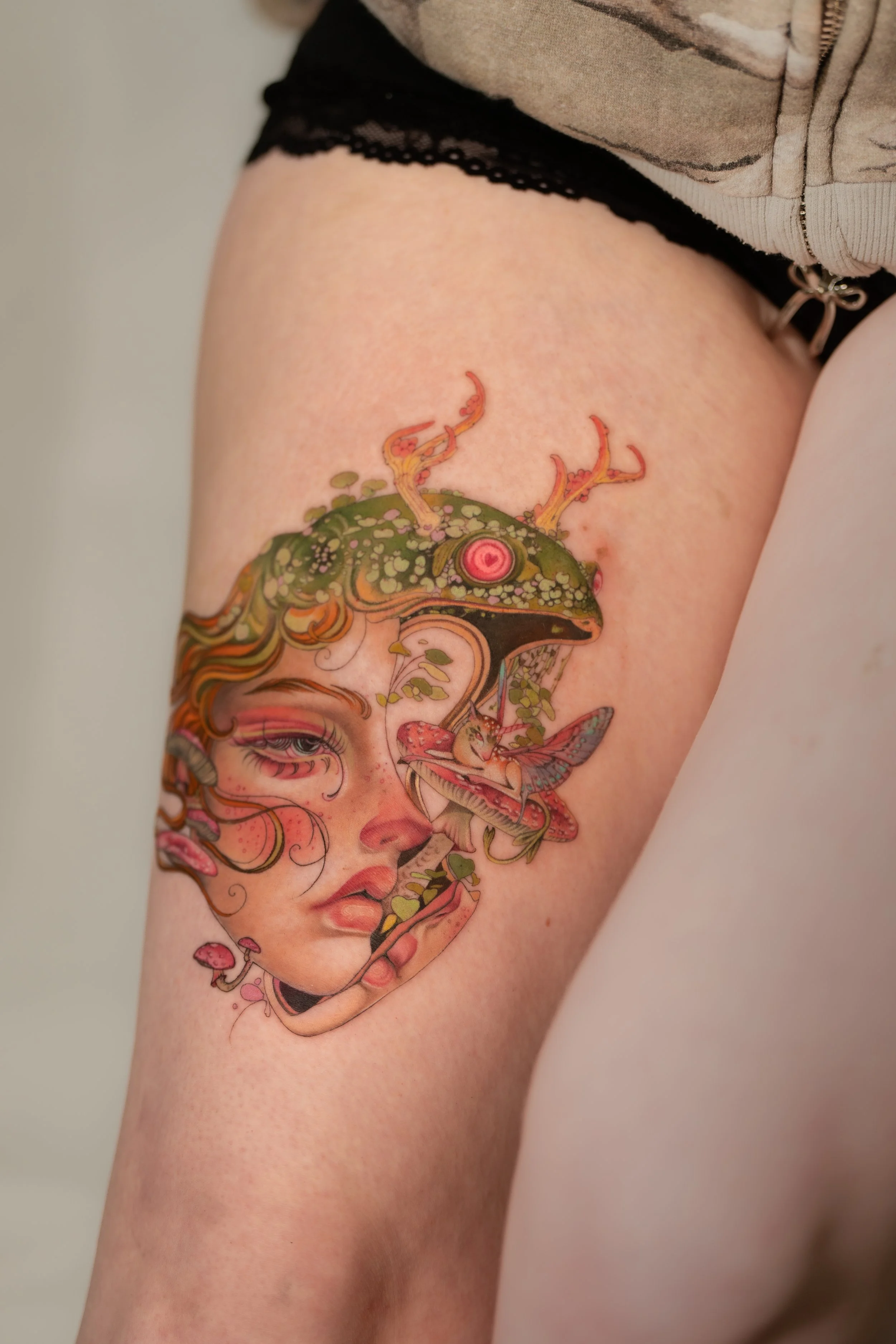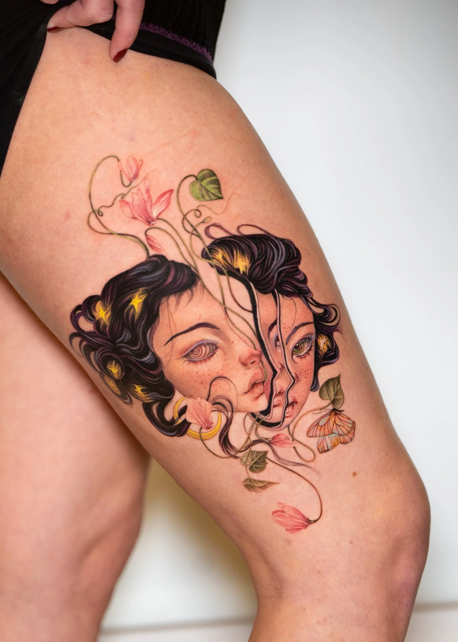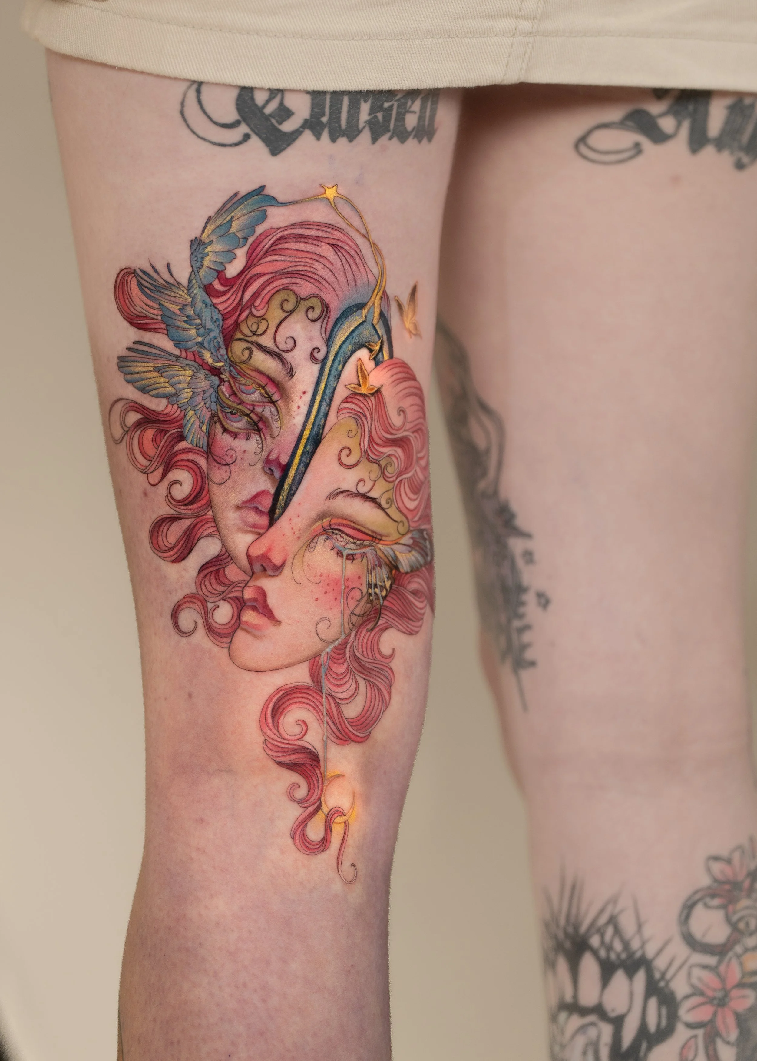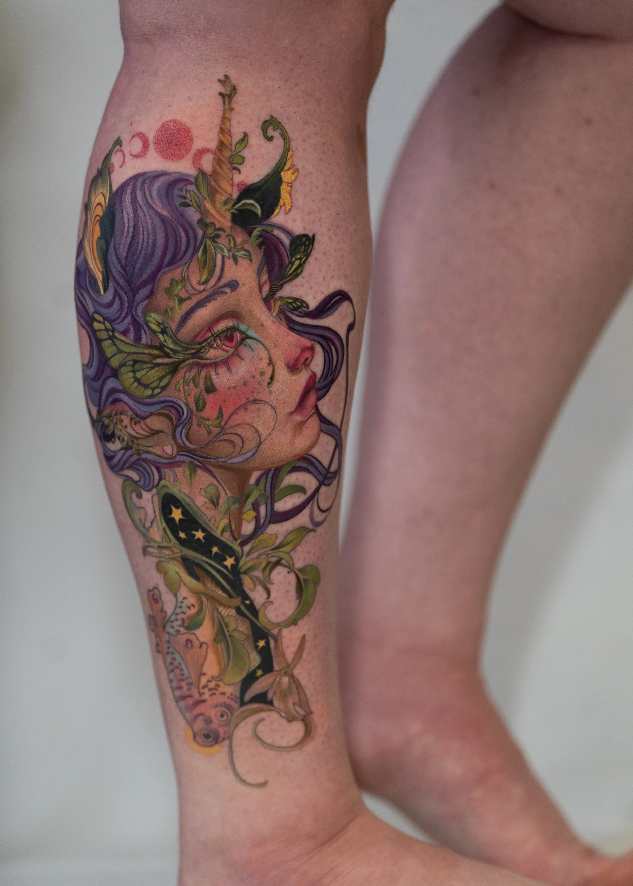 Throughout my life I noticed a growing sensitivity to the spiritual world. Many psych mediums told me to accept my spirituality, but I was afraid of what that might mean. After long seasons of struggle and burnout, I began spiritual practices for self-connection and regulation. As my practice deepened, my sensitivity increased, and light beings began to make themselves more present, speciality when I was drawing or tattooing. With time the more I asked for guidance, the more effortless and beautiful the work became.