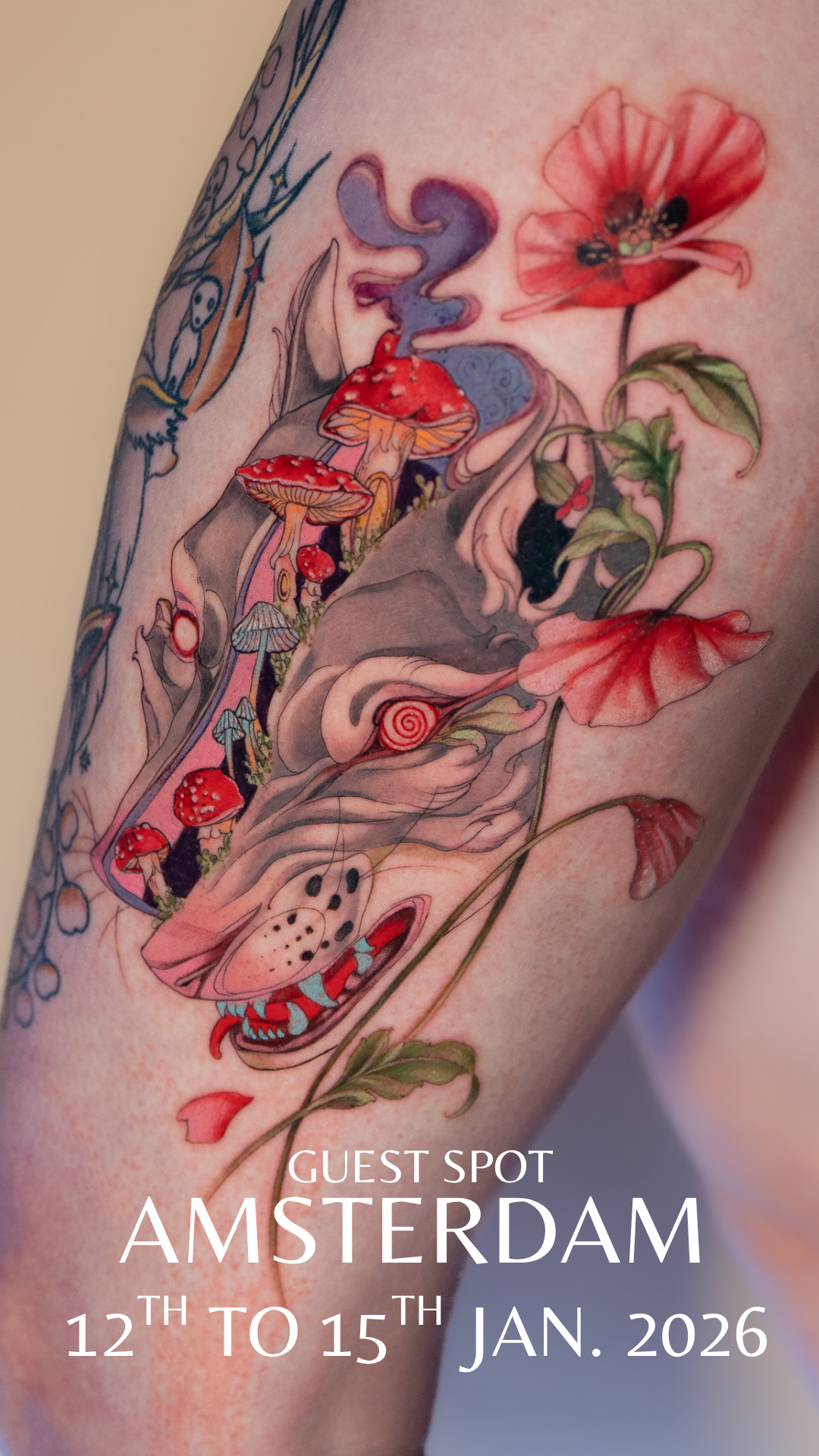 I have been tattooing for eleven years. In that time my work has been featured in magazines across Europe, I’ve taken part in world‑class tattoo conventions, gained sponsorships, and developed a signature style people recognize at a glance. I travel the world to tattoo—there’s something about movement that quickens my heart, the same pulse that drives my line work. Despite misadventures on the road, travel and tattooing together keep me alive and grateful for this path.